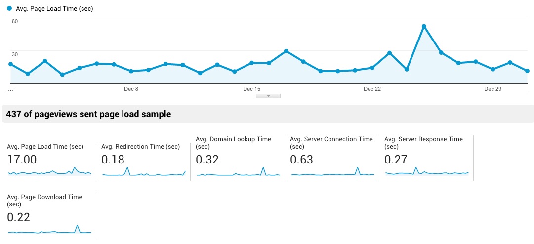 If you begin to see issues (or just want to work on improving site speed for better user experience (UX) and SEO), check out the Site Speed Suggestions report in the same category. (Note that my Avg. Page Load Time is quite poor — 17 seconds — and something I need to work on! Google typically recommends under 5 seconds.)